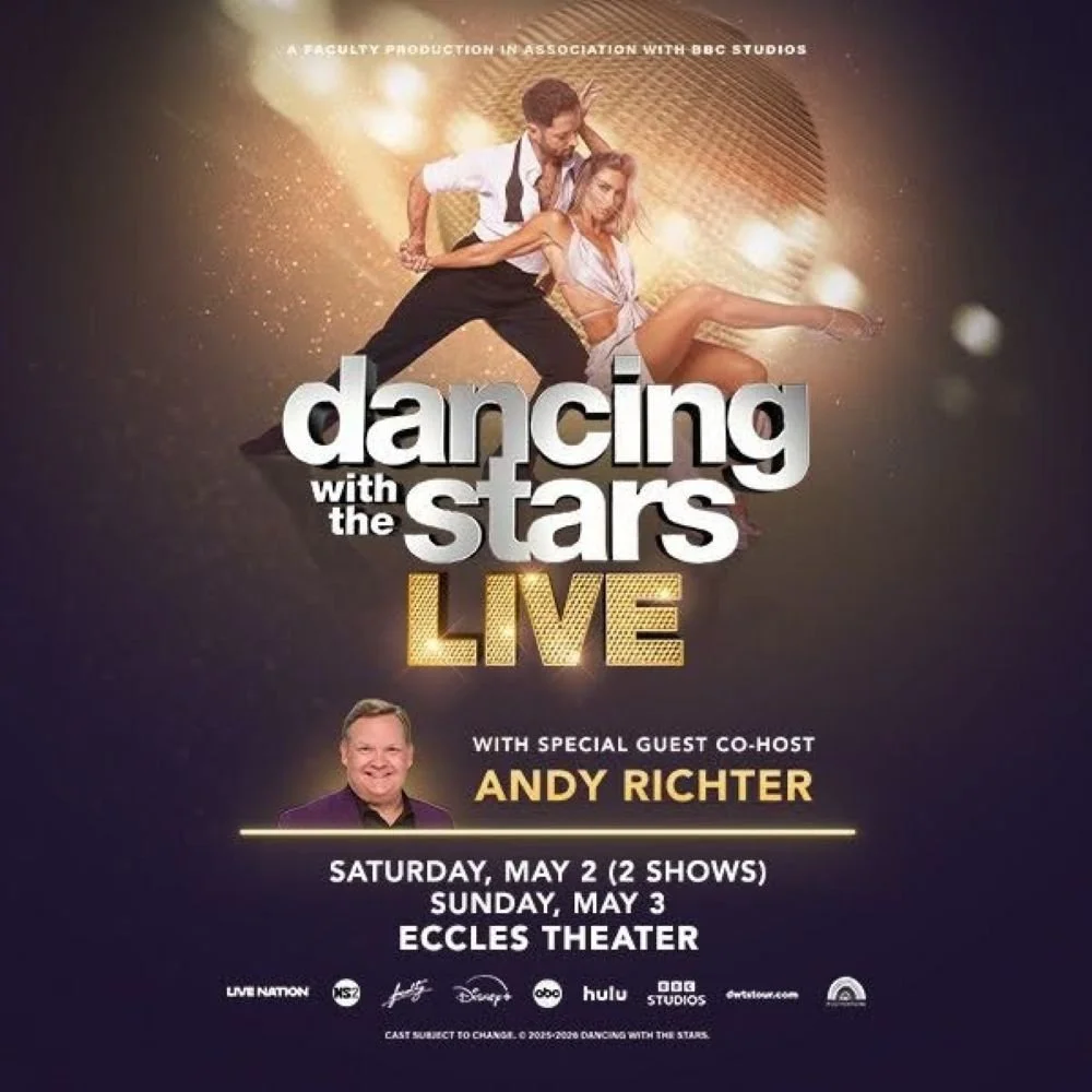 Dancing With The Stars brings its live tour to Eccles — sequins, lifts, ballroom drama, the whole spectacle. Plus they’re bringing the best part of DWTS season 34: Andy Richter!! Eccles Theater, 8pm, also Sunday.