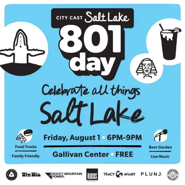 City Cast celebrates 801 Day at the Gallivan Center with a beer garden by Second Summit Hard Cider, live music from The Siren Collective, food trucks, and an artisan marketplace. It’s a party for locals, celebrated by locals, celebrating locals. Friday, 6-9pm at the Gallivan Center.