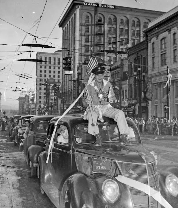 Photo courtesy Ron Fox. Salt Lake City on Victory Day, 1945